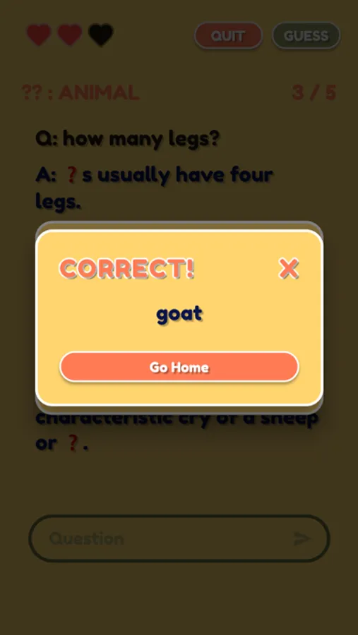 Guess Me is a game where you guess the hidden word by asking questions about the word randomly selected by AI. Users can ask questions about the words suggested by AI and collect the words they guessed. This game provides a fun and enjoyable experience through word prints.