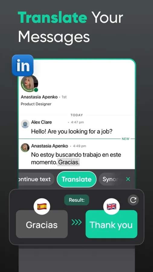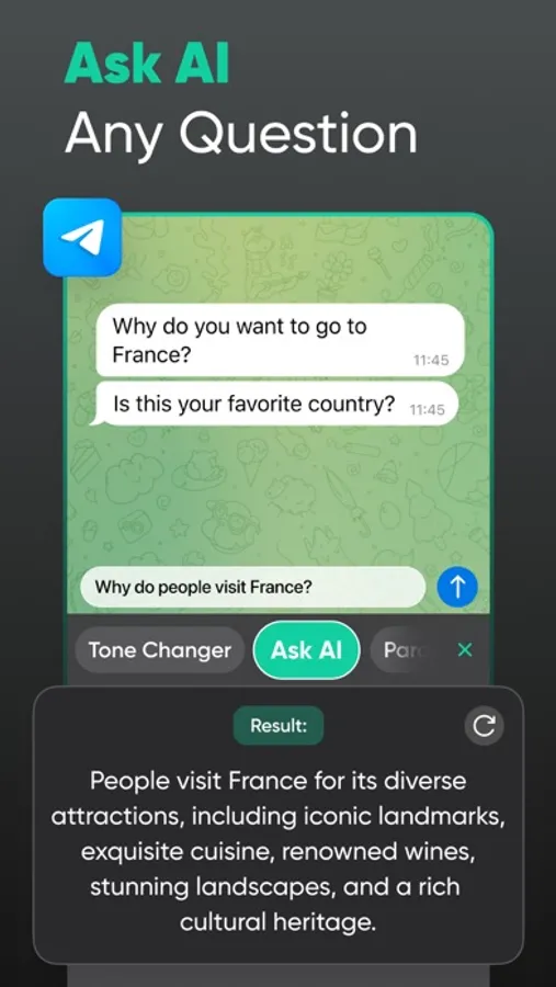 For those experiencing writer's block, AI Keyboard can effortlessly generate the next few sentences. AI Keyboard is also adept at assisting with translation in over 20 languages and offers tone and style AI options for sentence and paragraph paraphrasing, including professional, humorous, sarcastic, creative, and even poetic styles.