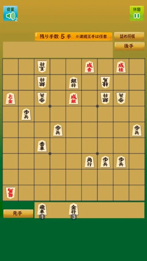 将棋終盤の局面で5手以内で詰ませるゲーム、