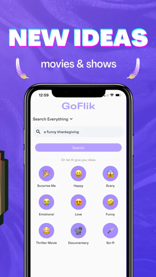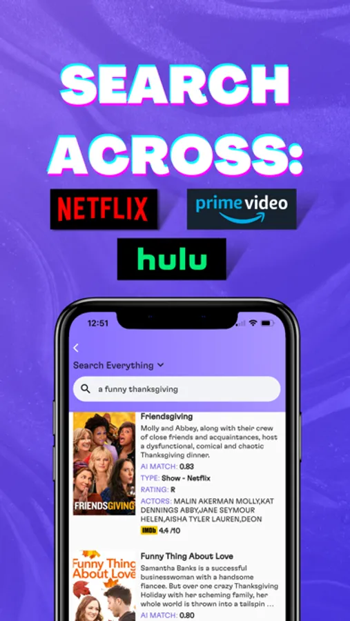 You can also run a custom searches specific to what you're looking for, e.g. a comedy horror movie about a couple, and we'll then match you with a show or movie relative to the prompt!