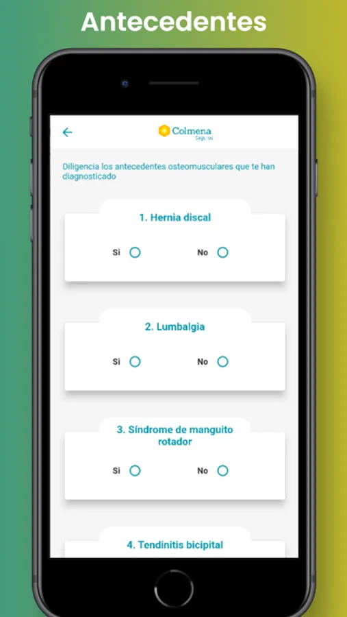 La aplicación móvil Colmena Seguros ARL permite realizar diferentes encuestas por parte del trabajador orientado a la Prevención de Desórdenes Musculoesqueléticos (DME) desde el contacto constante con el trabajador, de esta forma y a través de diferentes Tableros de Control obtendremos información en Tiempo Real que nos permitirá definir planes de acción y estratégias orientadas a la prevención.