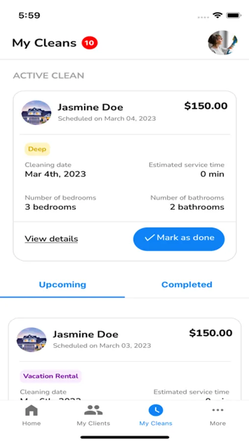 Keep track of each clean from start and finish to make sure you're working efficiently and getting paid fairly for your time. Our scheduling and availability features keep your appointments organized, while our client list management tracks of all your clients' details and cleaning schedules. Your unique business page can easily be shared on Yelp, Google, or neighborhood listservs.