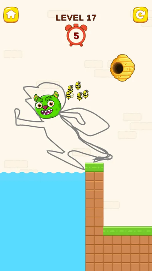 Help the jumbo josh to escape from attacking bees in order to save the dog pet rescue. Draw lines to prevent bees from hurting pet dog and save the jumbo josh.