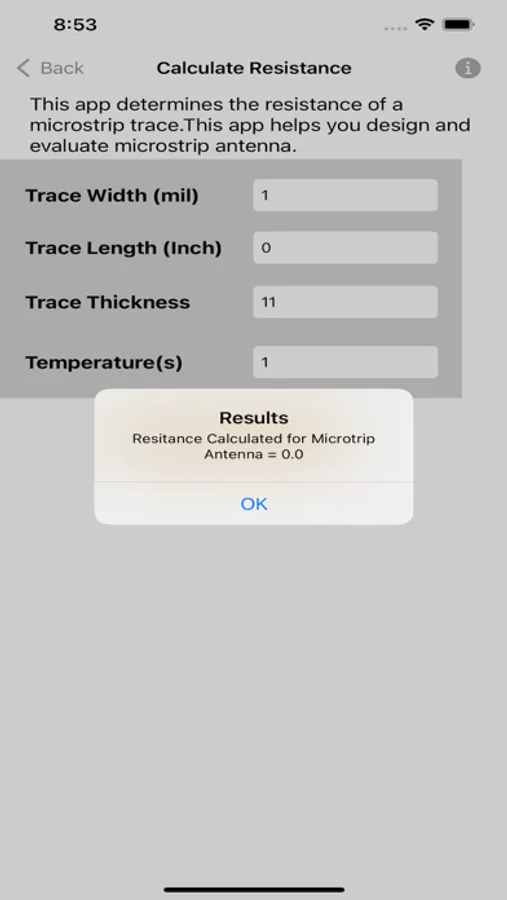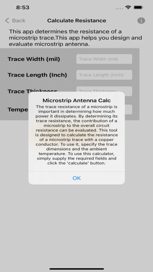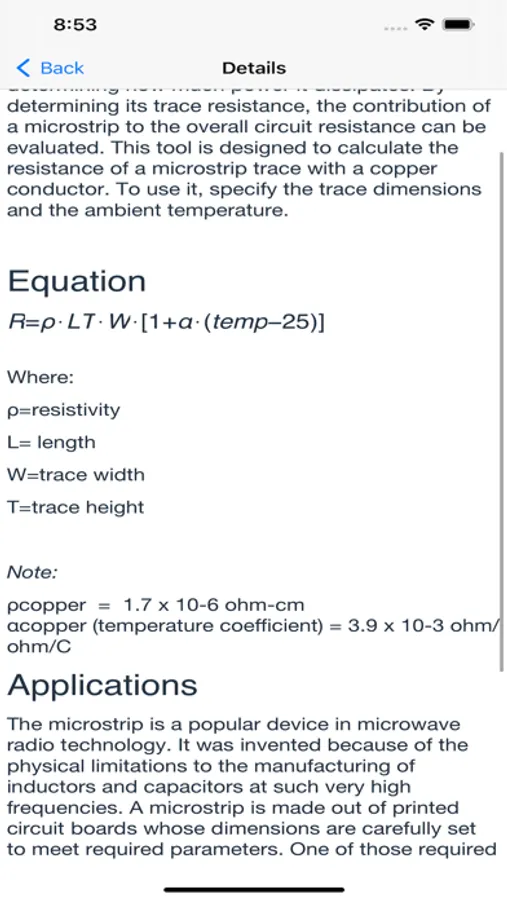 Now Designing Microstrip Antenna iOS made so easy with your Resistance.We have applied computing calculation in the app to solve this problem.The trace resistance of a microstrip is important in determining how much power it dissipates. By determining its trace resistance, the contribution of a microstrip to the overall circuit resistance can be evaluated. This tool is designed to calculate the resistance of a microstrip trace with a copper conductor. To use it, specify the trace dimensions and the ambient temperature. To use this calculator, simply supply the required fields and click the 'calculate' button.