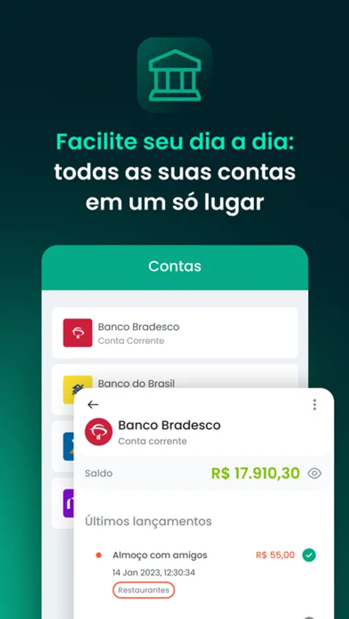 - Centralização das informações financeiras, economizando tempo e recursos;
