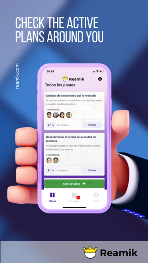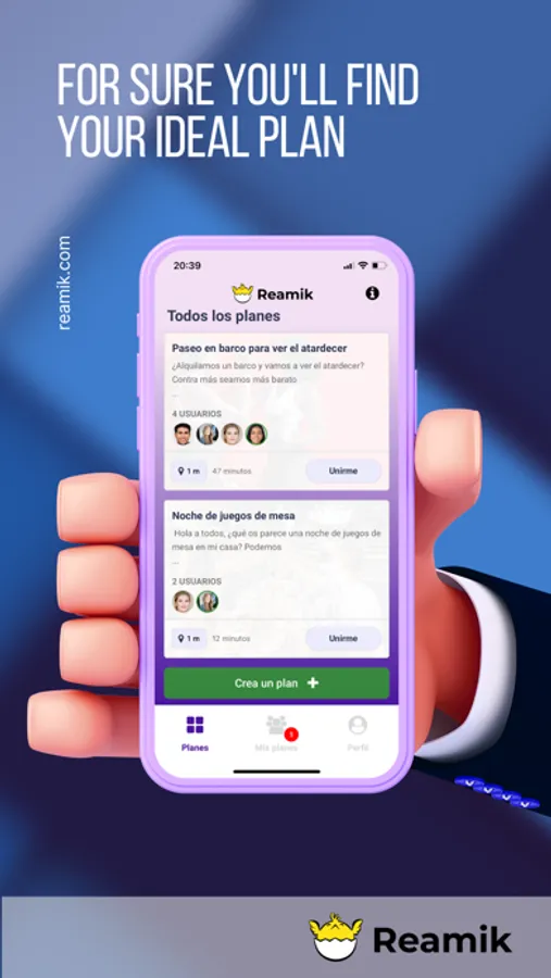 Welcome to Reamik! Here, you can create plans in a matter of seconds and share them with people close to you. You can also join plans created by other users in real time and instantly.