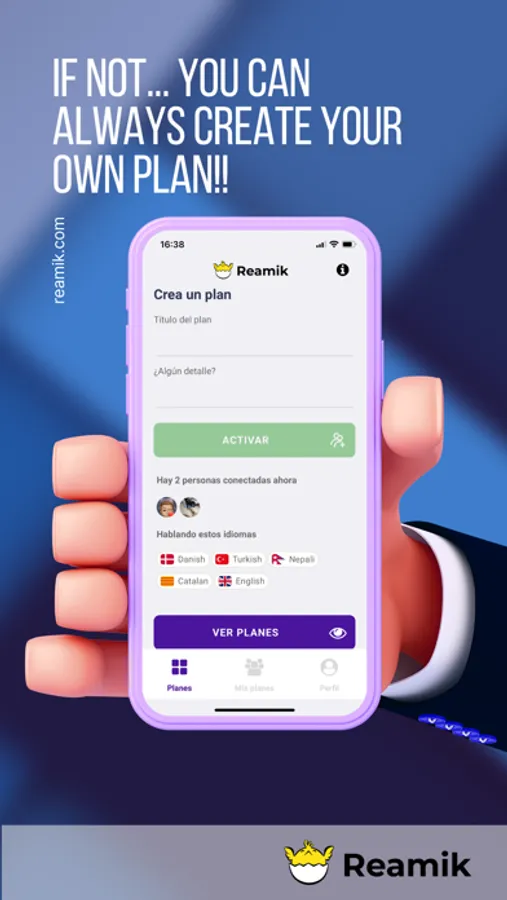 And the best part? Our app is available in several languages, including Spanish, English, German, Dutch, French, and Portuguese. This means you can easily use Reamik, regardless of your native language, and connect with people from all around the world.