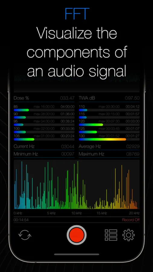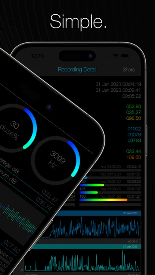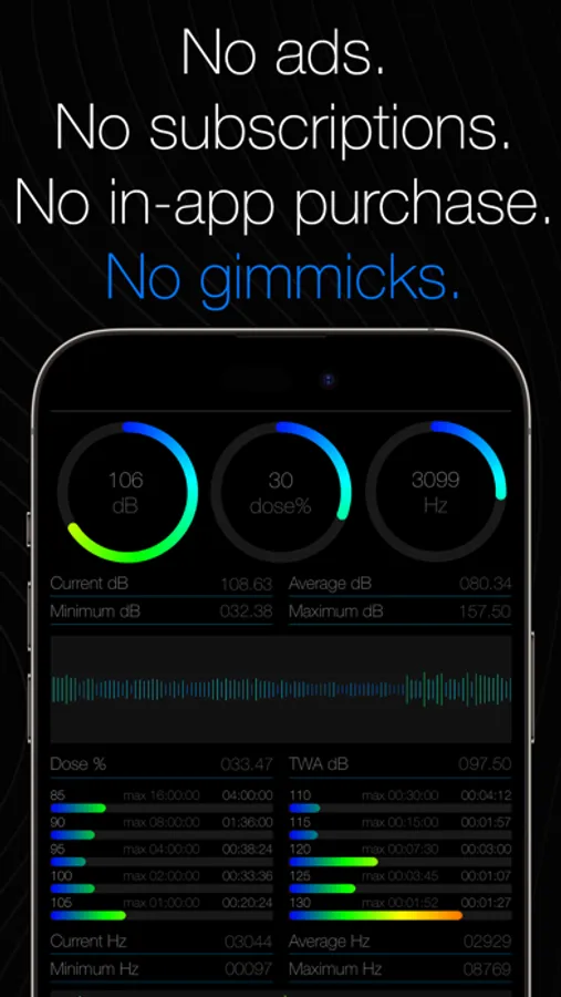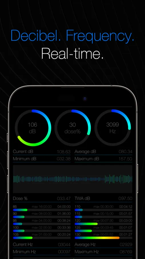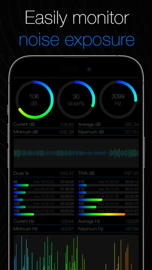 Easily monitor decibel, frequency, and your daily noise exposure!