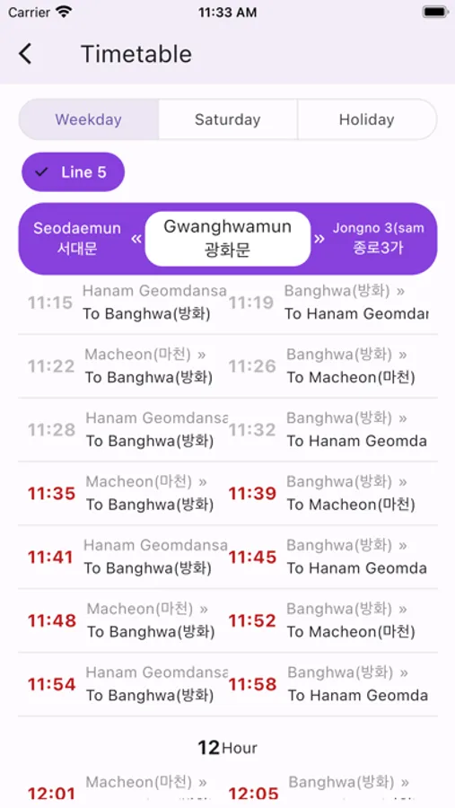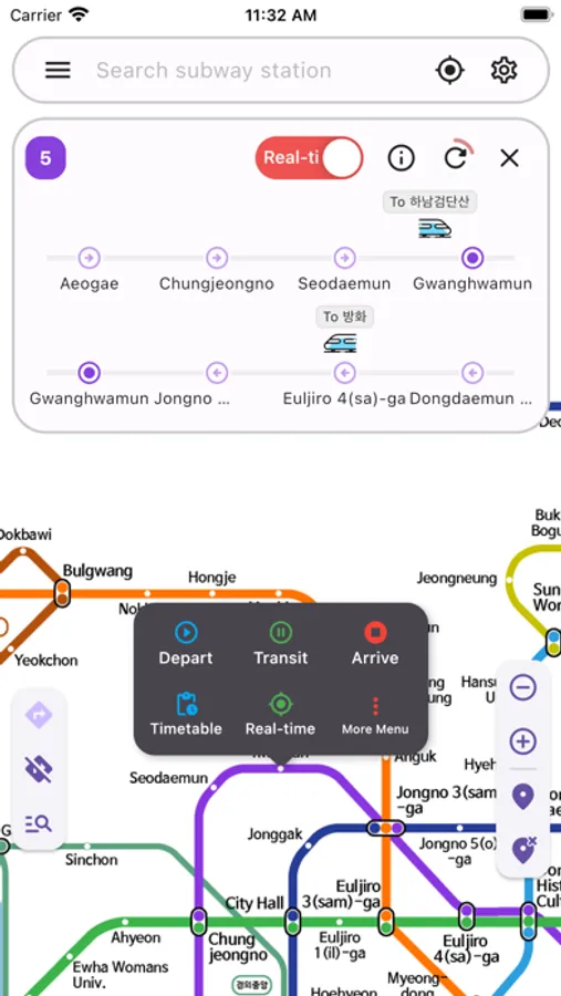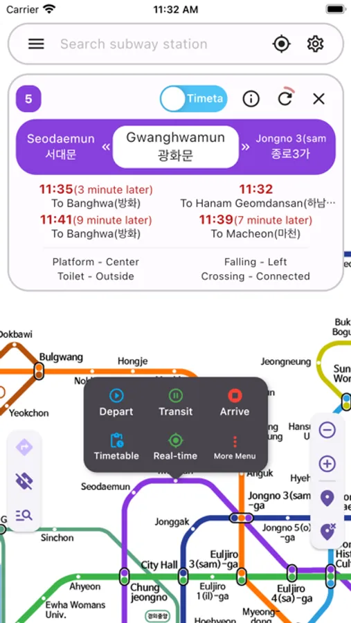 5. Metropolitan area (Seoul), Busan, Daegu, Daejeon, Gwangju subway information provided