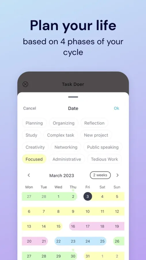 Essence improves well-being, balances hormones and boosts productivity by optimizing tasks, meetings, workouts and nutrition according to the four phases of your menstrual cycle.