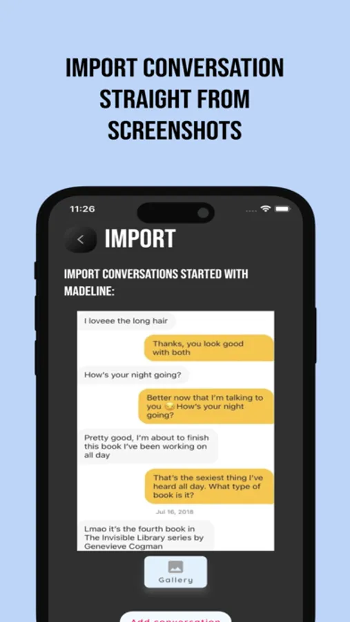 "WizConvo" is the ultimate chat helper to easily get inspiration on any chats. You can easily import a conversation screenshot and get a suggested answer, fine-tune the personality of the AI, and get an analysis of where the conversation is going in terms of connection with the other person.