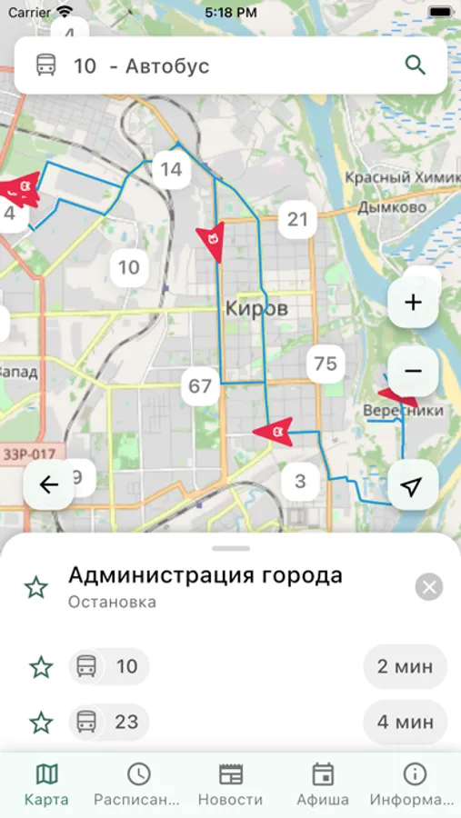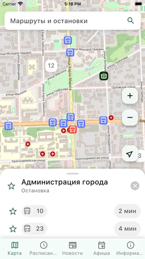 Если вы ежедневно пользуетесь одним и тем же транспортом — добавьте его в избранное! Это поможет быстрее узнать, через сколько придет ваш любимый автобус!