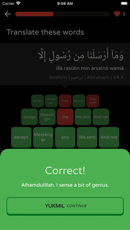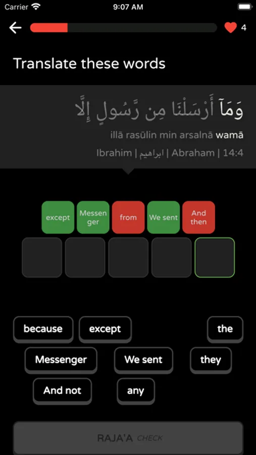 Learn Quranic Arabic by translating words from a different Ayah every day.