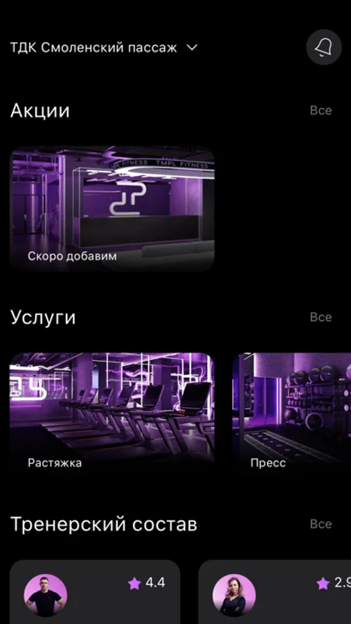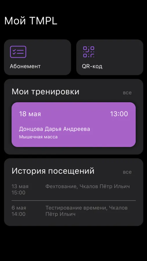 Приложение TMPL FITNESS предоставляет доступ к управлению своей жизни в мире TMPL