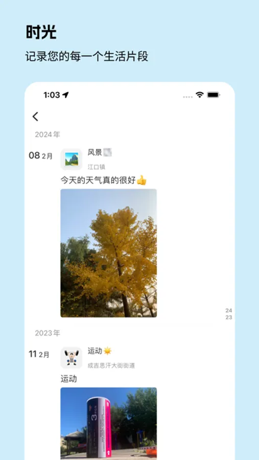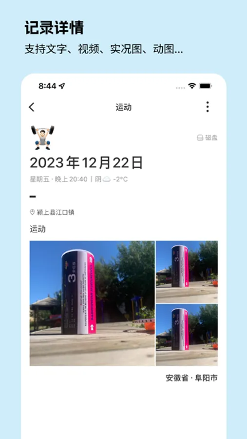 背景照片:在详情页使用一张图片或一段视频作为背景来装扮自己的记录,让回忆更加个性化。此外,还有背景墙可一键装扮所有记录。