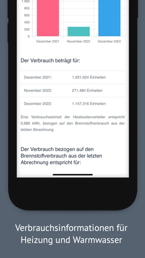 Die App liefert Verbrauchsinformationen der monatlichen Fernauslesungen Ihrer Wärmezähler,
