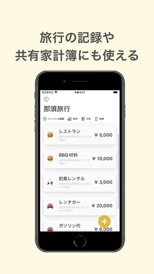 ・旅行・イベント・飲み会の支払い記録をつけて、最後に精算する