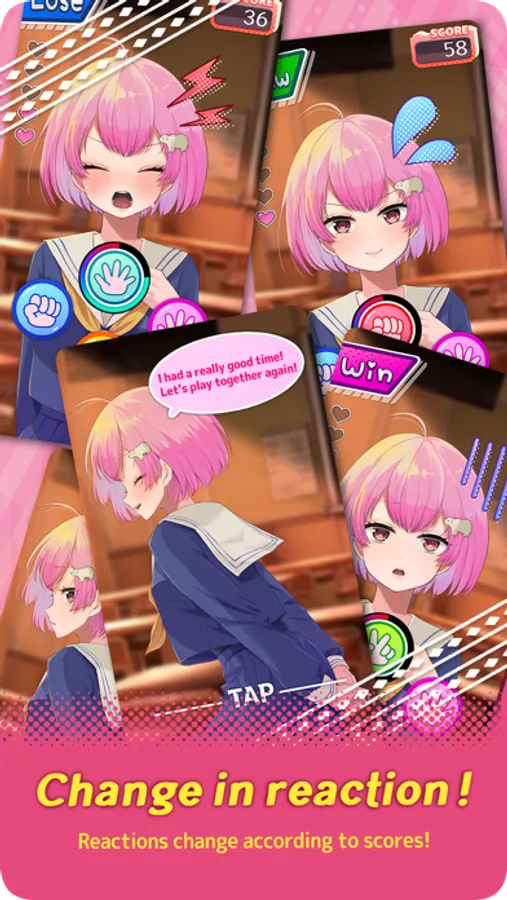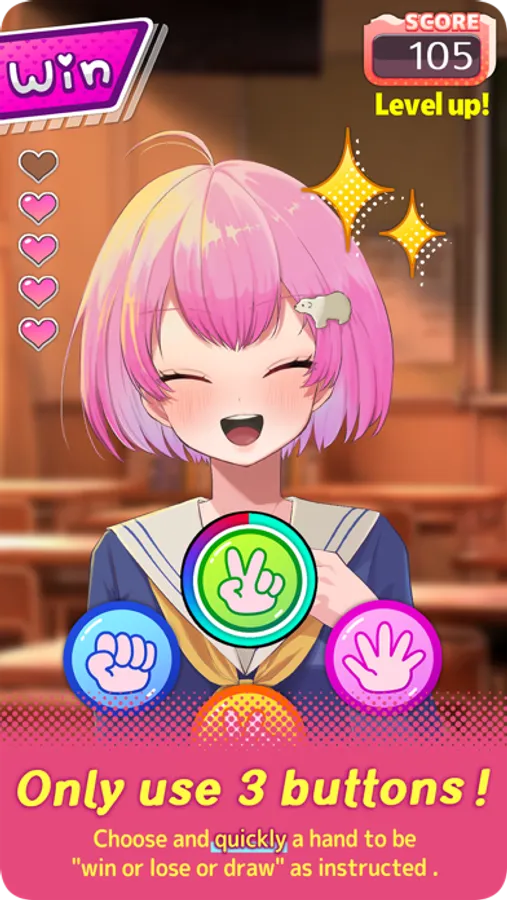 Follow Rin-chan's instructions to perform rock-paper-scissors, and your score will increase! !