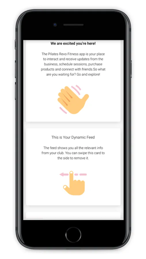 After setting up your personal profile in the app, you'll be able to easily renew your membership, purchase Pilates Revo Fitness merchandise and connect with other Pilates Revo Fitness members.