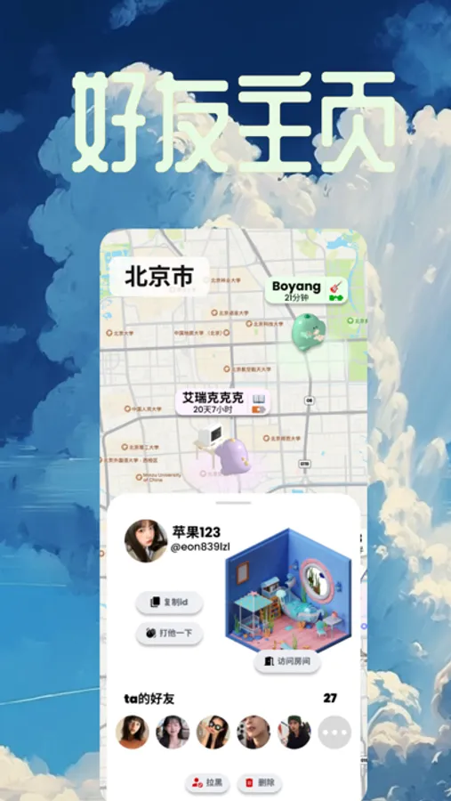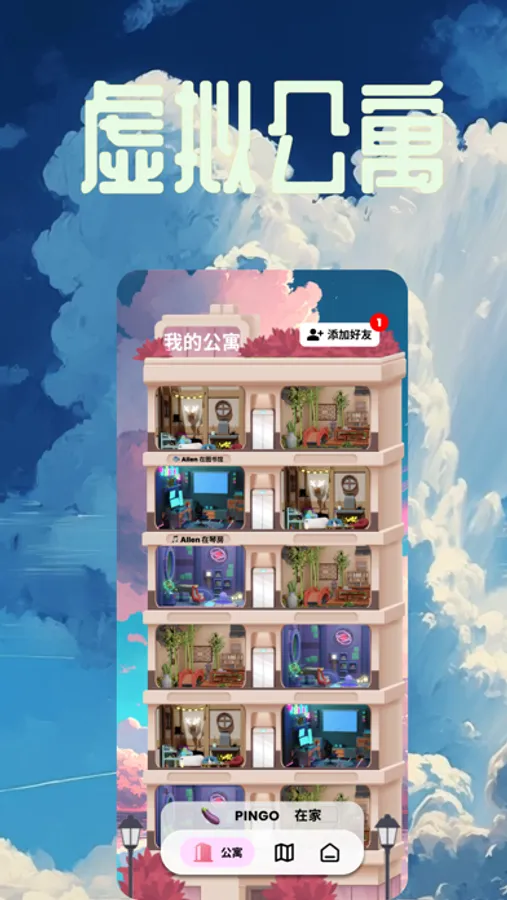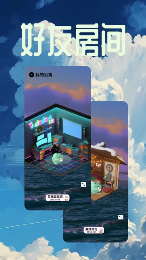 和友友们入驻同一个公寓,最爱的人就在隔壁~不仅可以看到他们的位置和状态,还可以和ta们的虚拟孪生互动,并串门彼此的私人定制小屋~