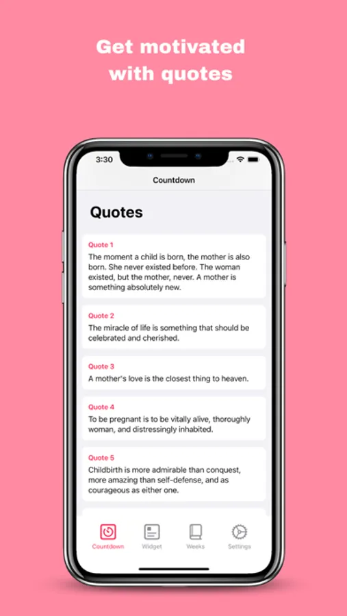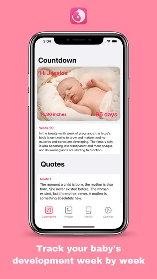 ◉ Get informed on what to expect week by week and stay inspired with motherhood quotes.