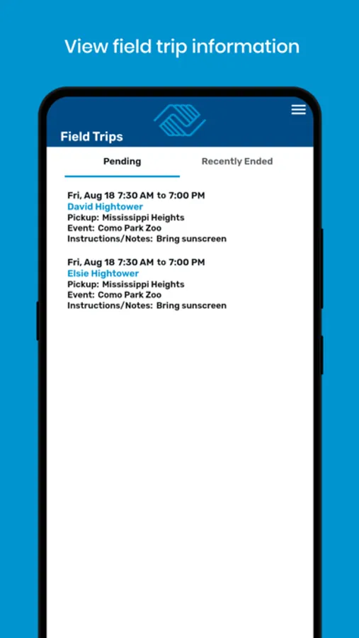 - View upcoming field trips