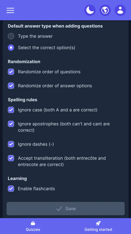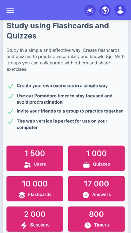 A simple way to practice and improve vocabulary or study for an exam. Pomodoro Timer included.