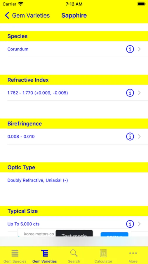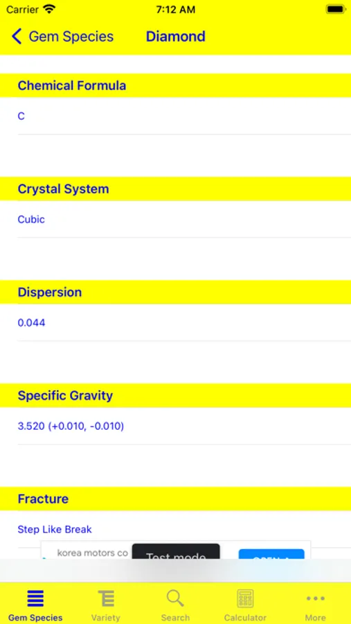 - Detailed gem species information, including chemical formula, crystal system, specific gravity, hardness, toughness, dispersion, transparency, polish luster, fracture, fracture luster, cleavage, heat, chemical, and light reaction, ultrasonic, steam, and soap/water cleaning, and variety-by-species information with accompanying notes (where applicable),