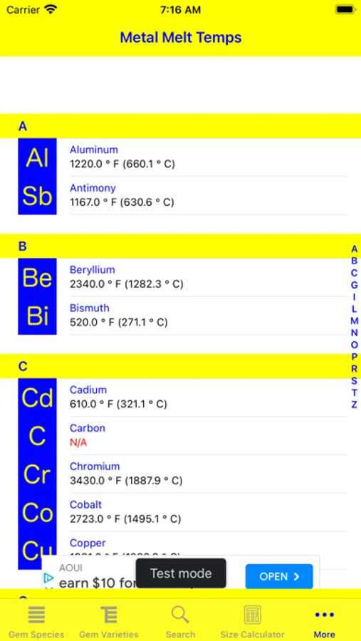 - Jewelry metal melting temperature (both Fahrenheit and Celsius) and specific gravity information, including common base metal and other materials information for comparison,