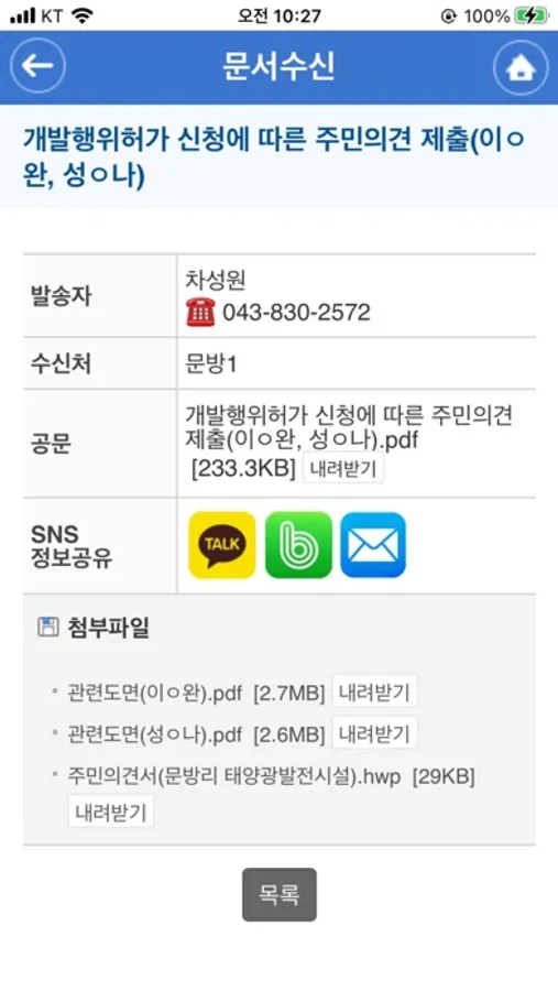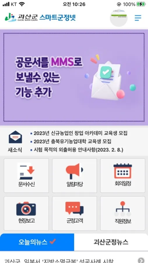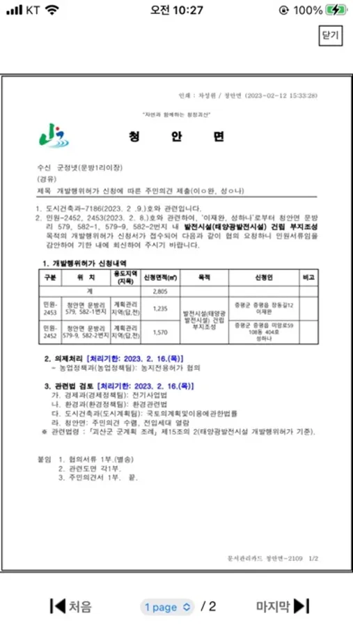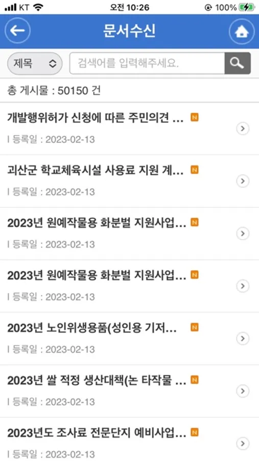 - 각 읍면 또는 리별로 알림 및 첨부파일들을 확인할 수 있습니다.