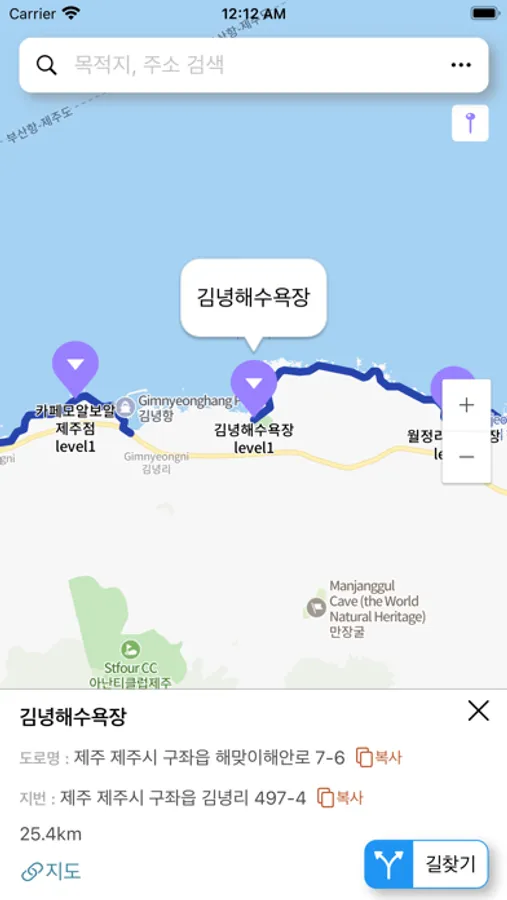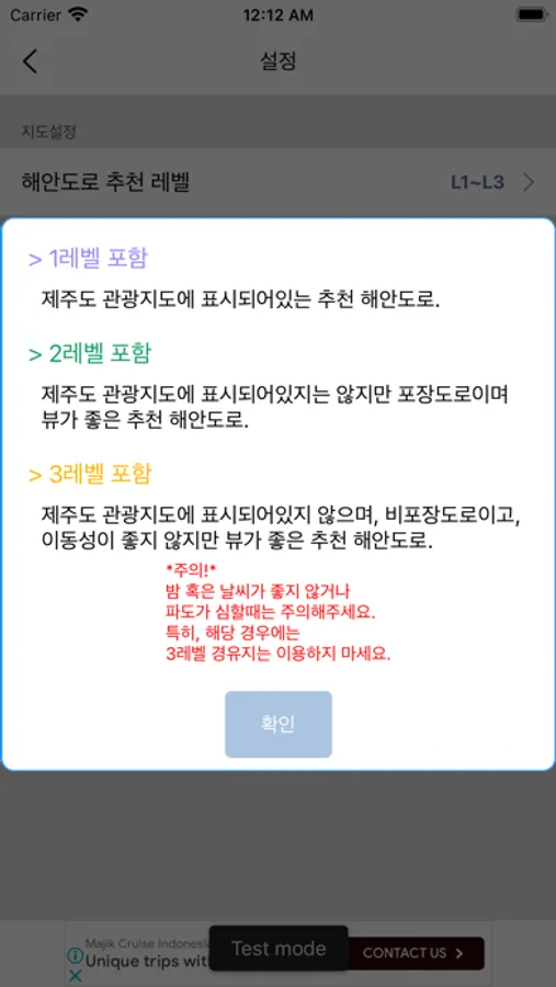 레벨1은 제주도 관광지도에 표시되어있는 추천 해안도로입니다.