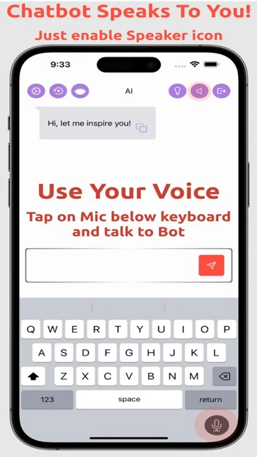 + AI Chatbot speaks back to you (choose your preferred Bot voice from a wide range of voices).