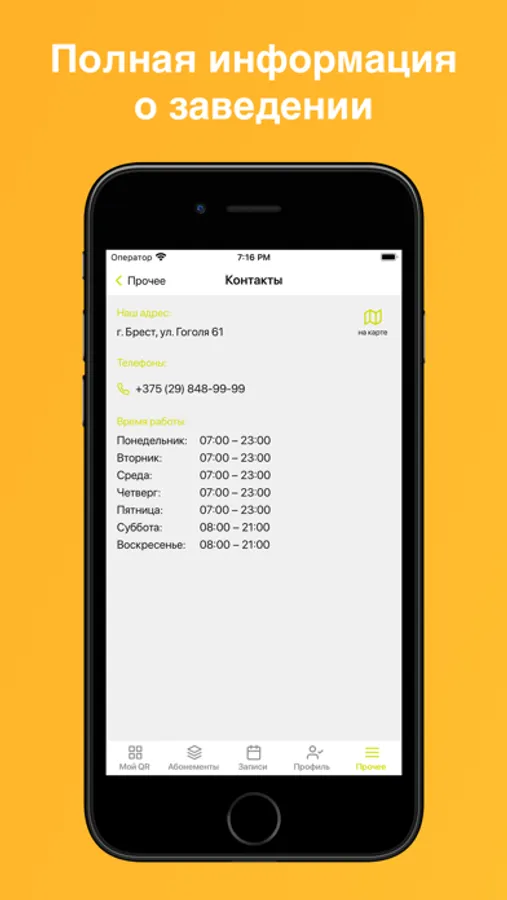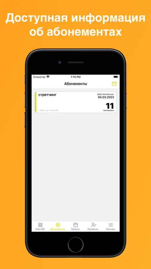 Получайте информацию о своих занятиях и абонементах, а также полную информацию о заведении.