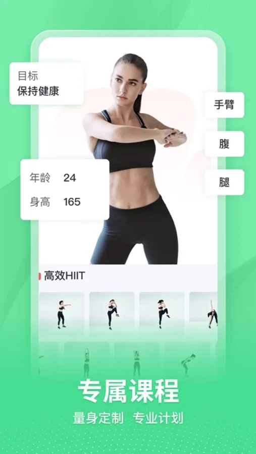 根据你的目标,生活方式,身体信息,定制专属训练课程,满足你的不同需求;