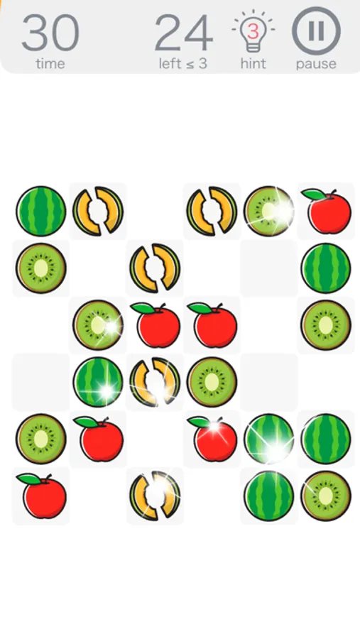 Simple but addictive puzzle game!!! just click the space tile that at the cross line of two identical fruits.