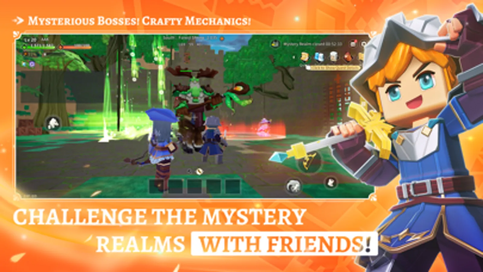 2. You can team up with friends and challenge our unique realms. Each world has different exclusive realms, where various clever mechanisms and mysterious bosses awaits you.