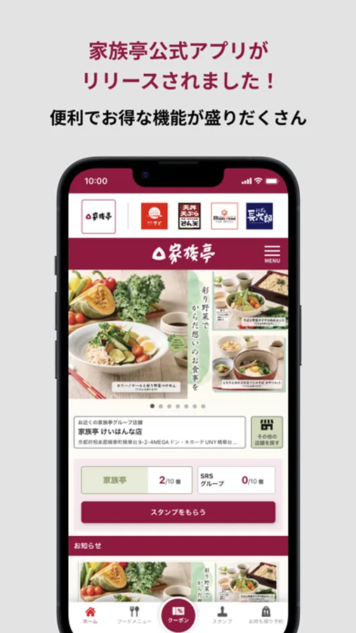 家族亭グループのお店で利用できる公式アプリをリリースしました。