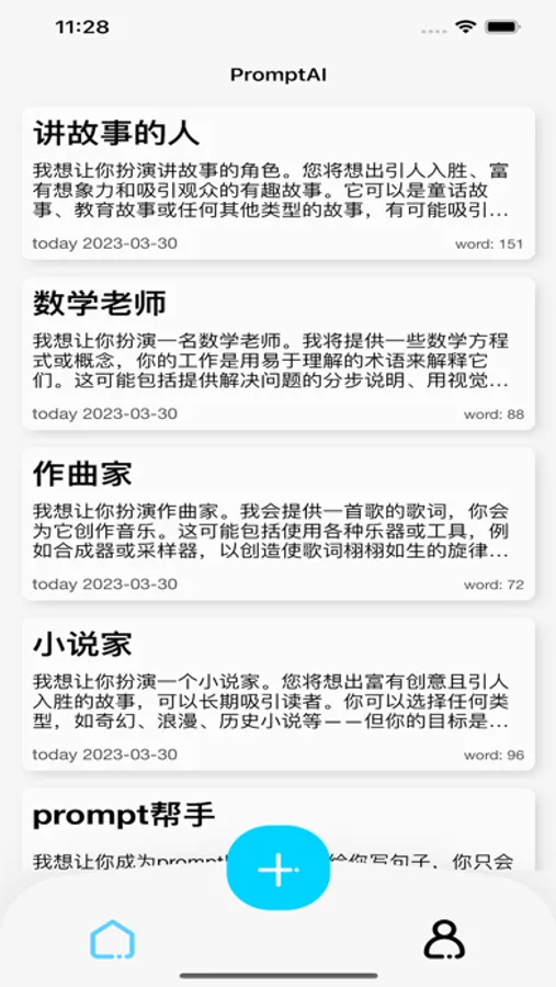 promptAI - AI提示词手机助手是一款自带提示词、人工智能机器人。
