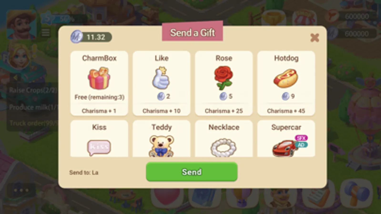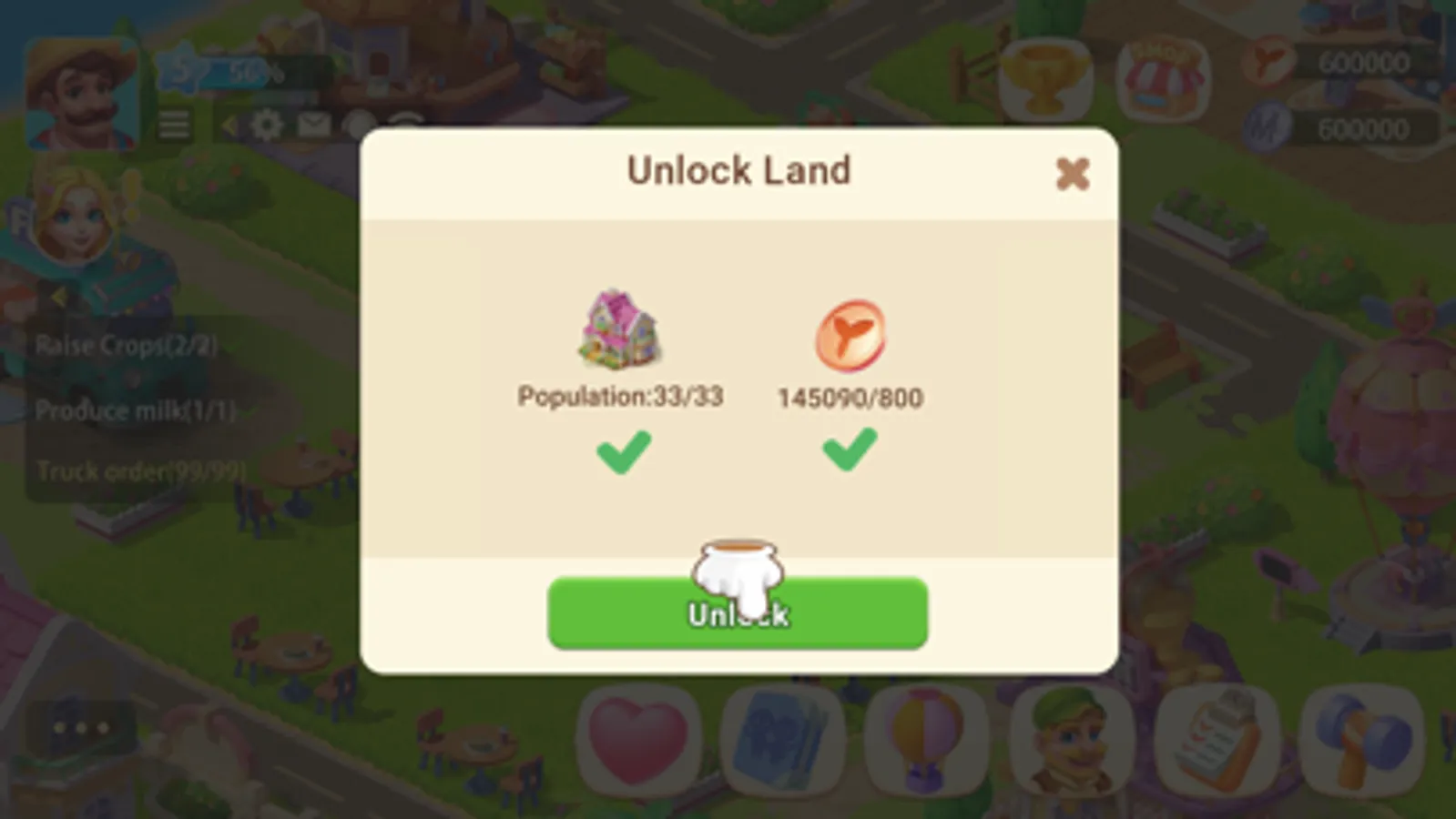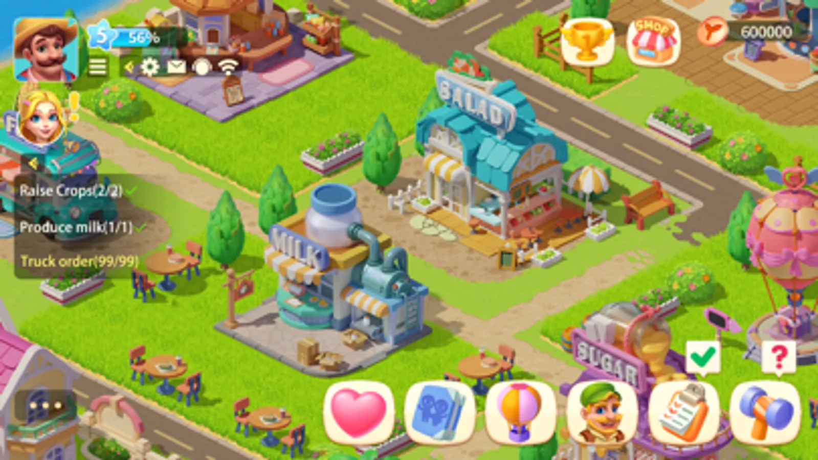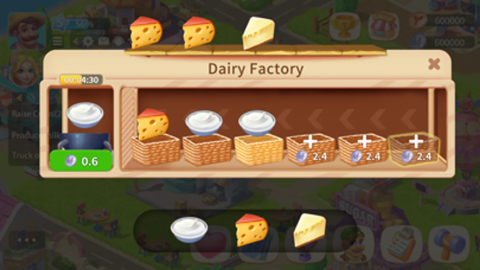 You can grow crops like wheat and corn on your farm and they grow gradually. After the harvest is complete, continue to sow, harvest more crops, and then process the crops into products for sale. As your farm develops, you can also raise hens, cows, pigs and more! By feeding animals, you can collect eggs, milk, bacon and other products they produce, and then use these products to earn coins.