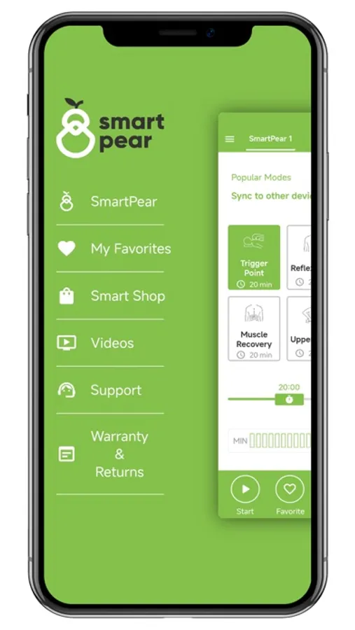 APP with Smart Pear massage products to use ,set the massage parts、therapy way、pain level、massage intensity、massage time and mode. Bluetooth connection to do effective massage and treatment.