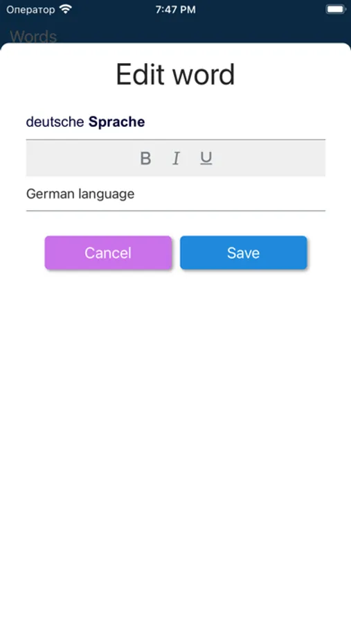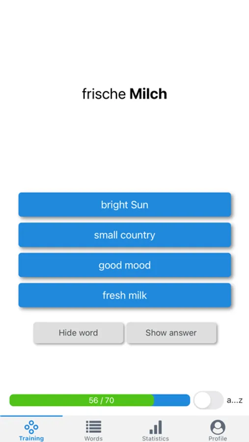 2. In section Training you choose what you think is the right translation for the shown word among other variants.