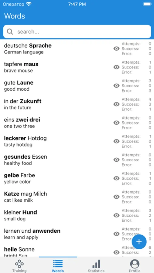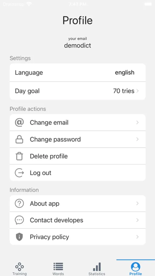 4. In section Profile you can set goal for you, how many times a day you'd have to check translation in Training section.