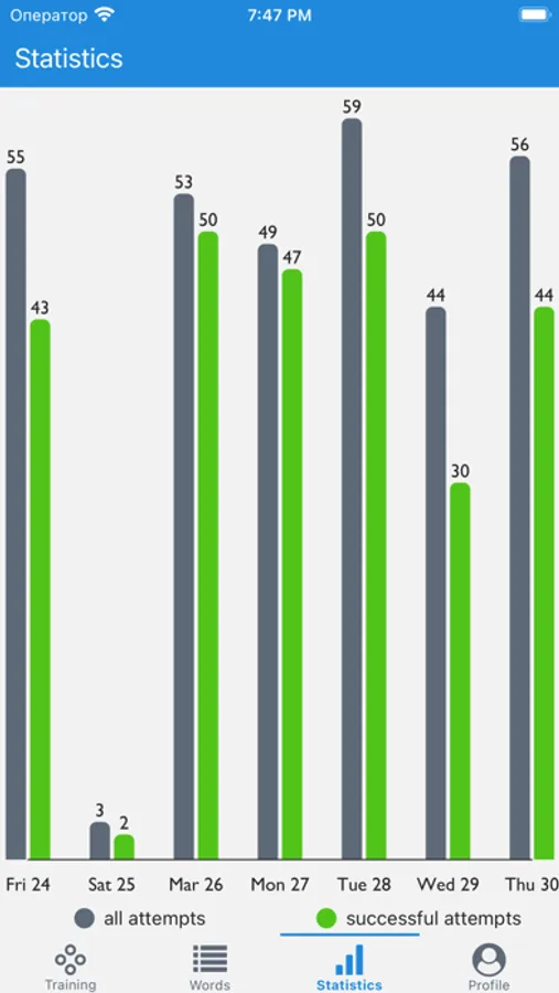 3. But more than this: in section Statistics you can see, how often you were studying and how many correct answers you've done.
