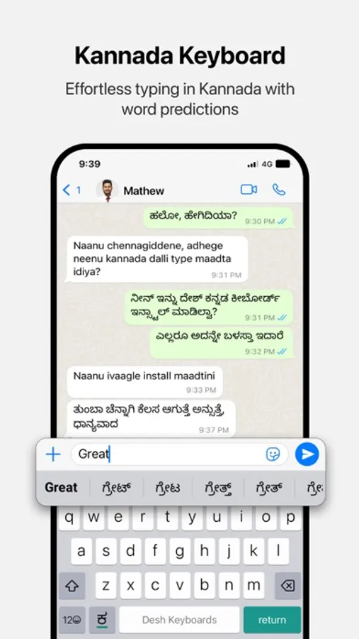 Desh Kannada Keyboard is a keyboard extension that makes Kannada typing super easy: