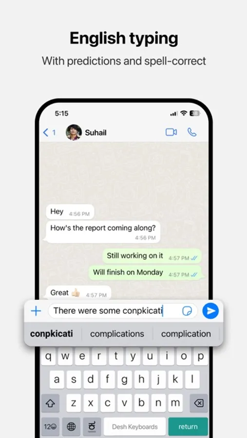 • Word predictions and spell-correct is available in English also