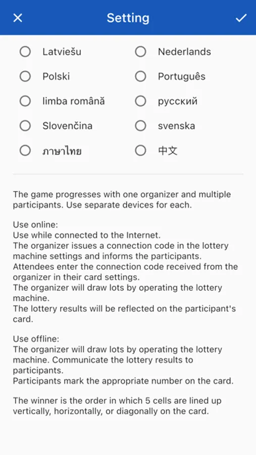 The winner is the order in which 5 cells are lined up vertically, horizontally, or diagonally on the card.