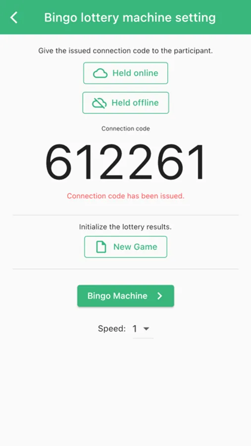 The organizer issues a connection code in the lottery machine settings and informs the participants.