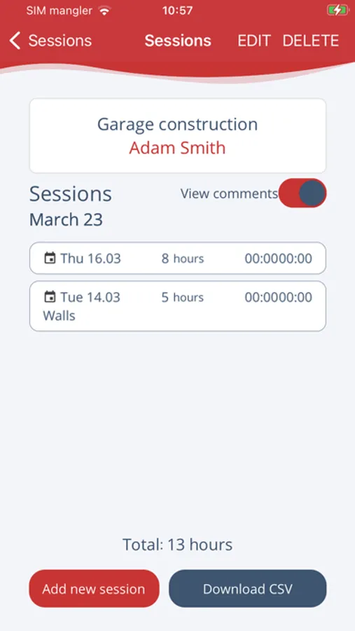 Register and log work hours for your specific projects. Adds safety for both you and your customers. Export the log-data to CSV.