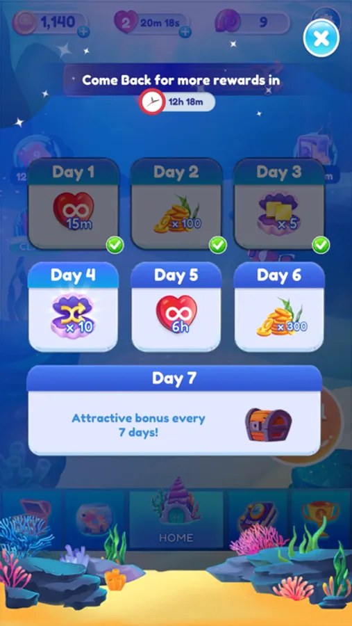 - Match 3 the same marine creatures