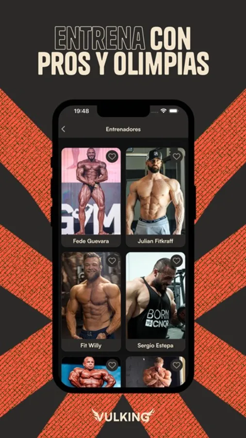 App para entrenos de fuerza y musculación guiado por atletas pro, campeones y competidores de Olympia, quienes comparten sus entrenos personales, los que han hecho de ellos atletas de élite.